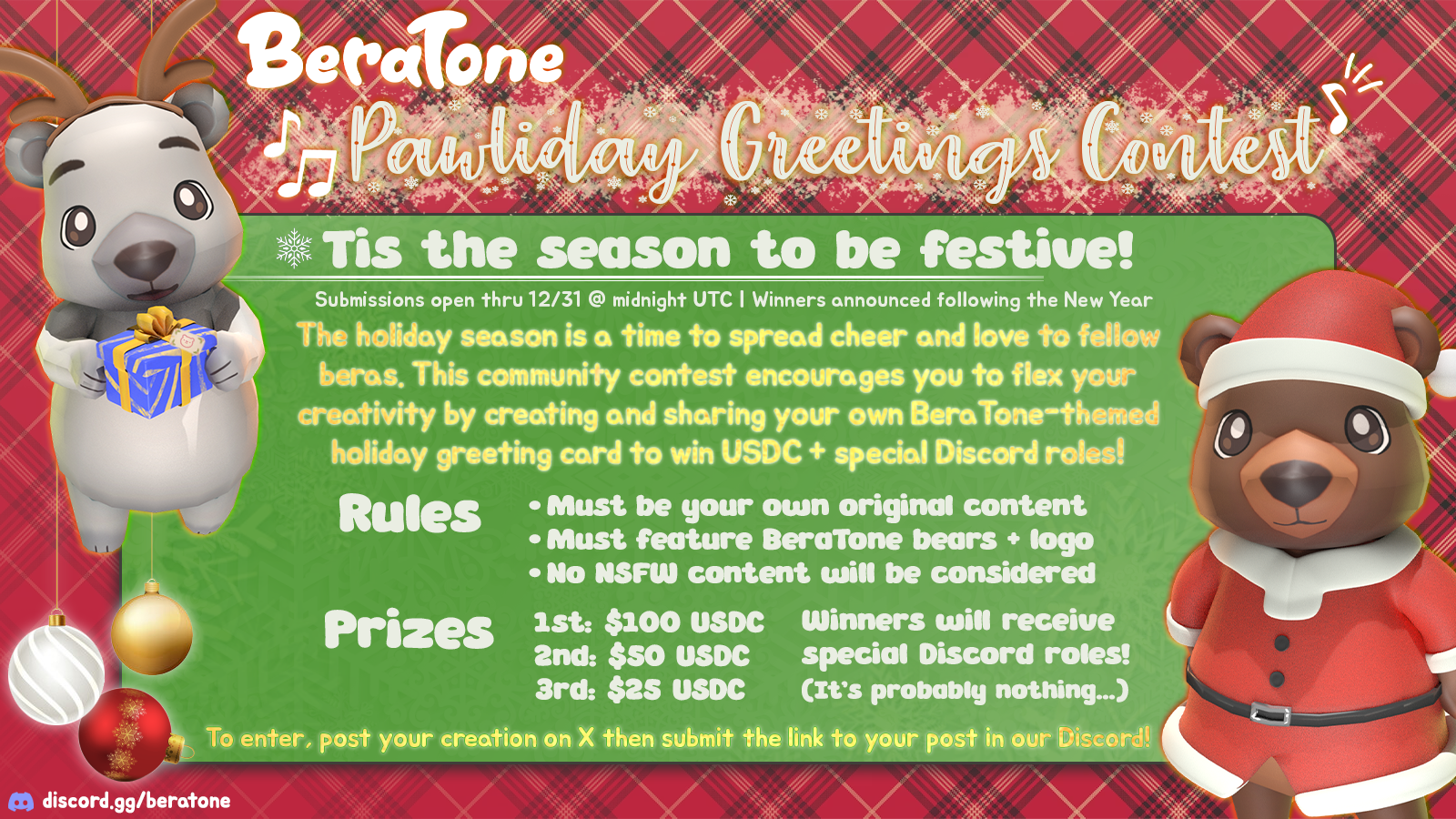 The design challenge was maintaining a cohesive visual identity across an expansive library of palettes, seasonal themes, and content types without losing the soul of the world. The design curation was one half of the role. The other was showing up as the brand itself: in Discord, on X, in Telegram, at global industry events, and in every partnership conversation that needed a real person behind it. Art direction and design system; 3D assets by the BeraTone team.