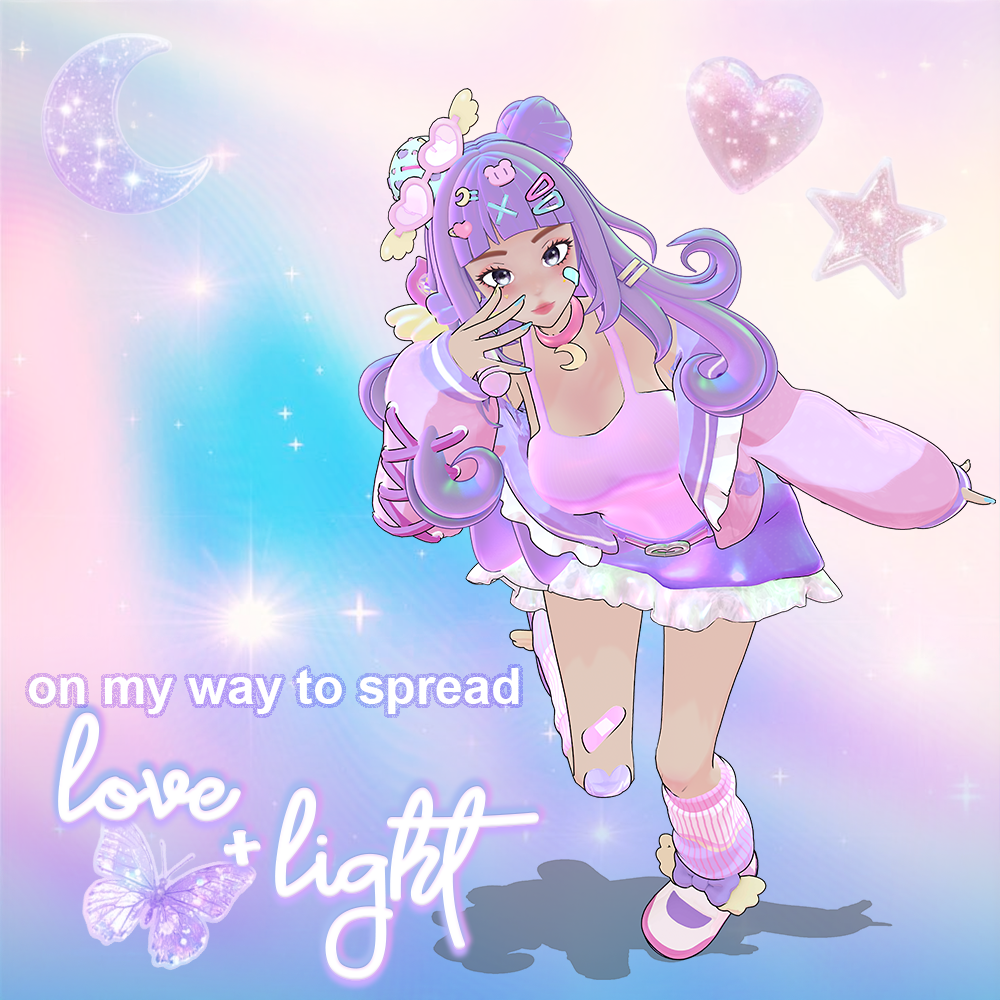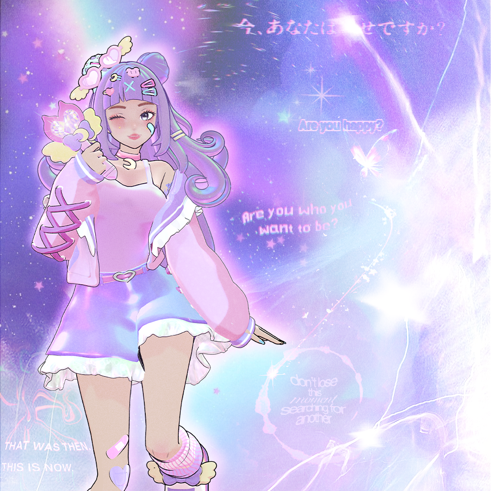 She's soft and kawaii on the surface with a personality that can lean chaotic, which meant every design decision had to hold both truths simultaneously without tipping too far in either direction. The audience didn't come from the work alone. It came from daily presence across the timeline, Spaces, streams, and group chats, showing up consistently enough that people came for the aesthetic and stayed for her. Consistency compounds. Full creative ownership from logo to composited art to social content.
